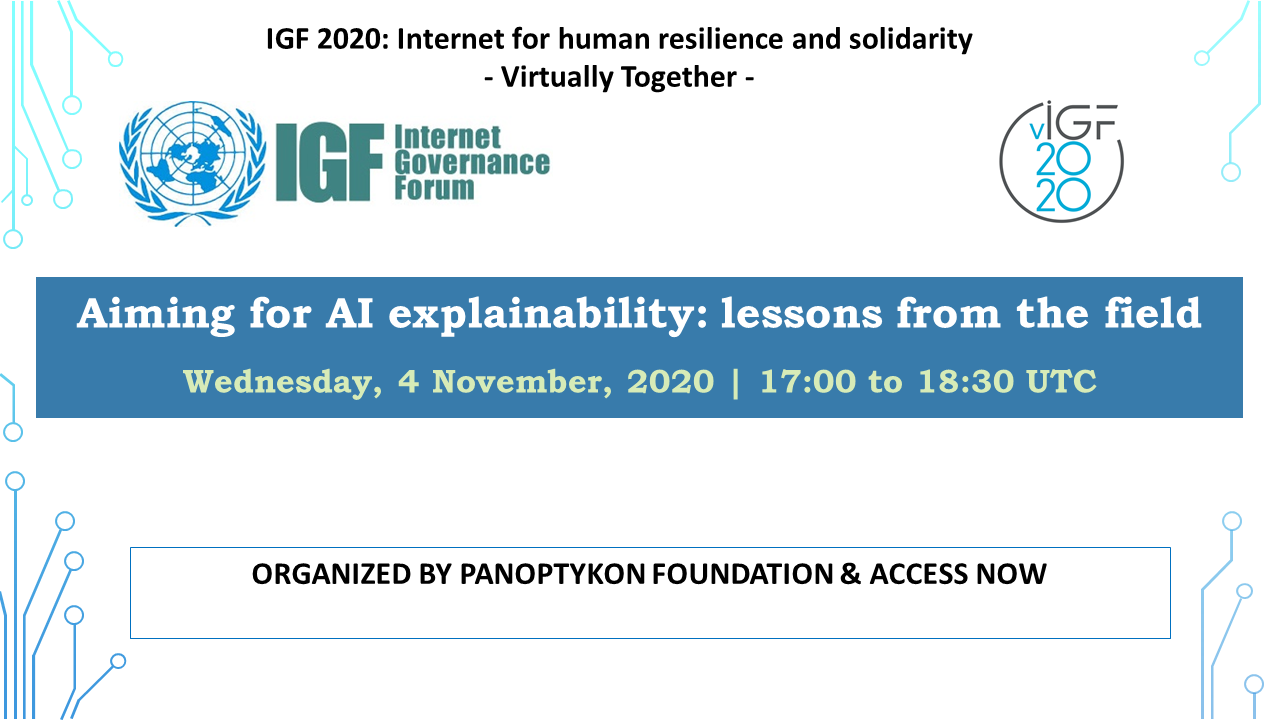 Article 04.01.2021 7 min. read Text AI systems will soon determine our rights and freedoms, shape our economic situation and physical wellbeing, affect market behaviour and natural environment. With the hype for ‘problem-solving’ AI, claims for (more) accountability in this field are gaining urgency. On the other hand, one of recurrent themes in AI discussions is what – for the purpose of this session – we called “the black box argument”. It is often argued that the logic of most sophisticated (and allegedly most efficient) AI systems cannot be explained and we simply have to accept that; that explainability would come at the price of stalling progress in developing successful AI applications. In this session we reflected on the value and implication of demanding AI, especially for those AI systems that have serious impact on individuals and the society. At the outset of the discussion we noted that explainability is only one of the demands formulated by those who advocate for responsible AI and it should not be seen as a goal in itself. [Explanatory note: in scientific debate "explainability" is understood as an active feature of a learning model describing the processes undertaken by the learning model with the intent of clarifying the inner working of the learning model. It is related to the notion of an argument or explanation where there is an interface between the user and the decision-maker (see) During the session we discussed explainability in a broader sense, as a set of demands made by various stakeholders (incl. researchers, data scientists and civil society orgs) towards machine learning models in order to increase their accountability. In this broad sense the demand for "AI explainability" includes: interpretability of individual decisions interpretability of AI model transparency with regard to the purpose of the system, input data, training methods and key decisions taken in the training process availability of documentation, which should include results of tests performed to check the robustness and other key features of the system. The session was composed of interviews with invited speakers (first half) and open, moderated discussion (second half). We discussed the following topics and made the following arguments: Practical approach to explainability: how can it be achieved? While there are test and edge cases for hardware and software, there is no "testing standard" for AI. Speakers agreed that responsibility of the impact of AI systems needs to start inside of organisations that produce them. AI system developers should perform tests to detect potential flaws and risks ("surface unintended consequences" – Hong Qu), before implementation and they should make results of these tests public (e.g. using the model cards framework). AI can have significant impact on society, not only on individuals. In order to capture this impact we need to designing different types of explanations (ICO proposed this framework in their guidance on explainability). It is also advisable to separate local vs global explainability, e.g. for a single decision (“why it has been reached and what can I do about that”) vs the entire system (understanding how the model functions, whether it discriminates certain groups, whether it is biased etc). We must take a human-centred design approach to monitor for disparate impact which harm real people, and second order externalities that might affect vulnerable populations. The most important aspect to be explained is not technical, but rather political: what is the purpose of the system and what are its success factors ("this is often the most striking blind-spot" – Hong Qu). Even black boxed systems can be explained, given the choice of the right type of explanation. On the other hand speakers acknowledged that 'unknown unknowns' in sophisticated AI systems are very complex. There will always be emergent risks in complex systems that no one can explain or expect. There is no "full" explanation as the results (lived experiences) come in, which in turn are used to continuously tune (both manually and automatically) the AI. Auditing the systems they deploy on millions of people is only a starting point to more substantial reform. In many cases, legal regulations that we need to challenge the corporate and government uses of AI are already in place, they just need to be enforced or pursued through litigation. Authorities and courts are prepared to handle confidential information and therefore can be employed to audit/investigate AI systems. They also have the democratic mandate to do so. The only element often missing is political will to challenge unfair AI systems. Value of explainability for people affected by AI systems People should know when they are being dealt with by a computer rather than a human being. It's disrespectful to allow people to think they are interacting with a person when you are actually processing them through a machine. We also see the inverse: sham 'AI' start-ups which pretend to be doing AI when they are actually relying on human labour, often poorly paid in the digital equivalent of a sweatshop. On the other hand, explainability as we see it today is not always actionable for end users. Most stakeholders don't need to understand this level of technical information. Also, the way field experts talk about explainability often misses the bigger picture. It tends to focus on the interpretation of individual result (i.e. how the AI system went from general features to individual decision), but ignore other essential features of the system that are equally important, such as its robustness and safety or fairness. Different kinds of explanations of how AI decisions are made might not have that much effect on whether people think they are fair; their intuitions about whether it's ok to make a decision about someone using a statistical generalisation tend to override any differences between different ways of explaini