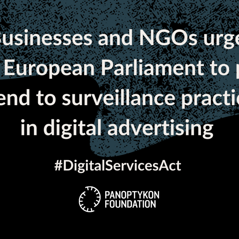 Article Limits to harmful surveillance in online advertising? Joint statement ahead of the vote in the European Parliament next week “We don’t have to manipulate our customers or exploit their vulnerabilities to scale up” – European entrepreneurs and social organizations appeal to the MEPs to put an end to invasive and privacy-hostile practices related to surveillance-based advertising and thus open the market to ethical and innovative online ads, which respect users’ rights and their choices. On the opposite bench – the Big Tech lobby fights for the status quo to remain – despite the well-documented social and individual harms caused by the current ads ecosystem. 13.01.2022 Text
